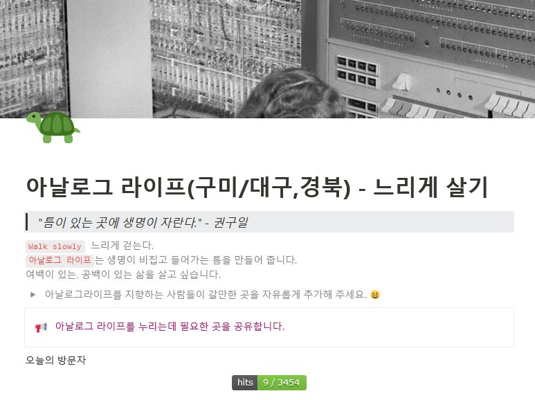 아날로그 라이프라는 "아날로그적 삶을 살아가기 위한 정보를 공유 하는 곳"을 만들었다.