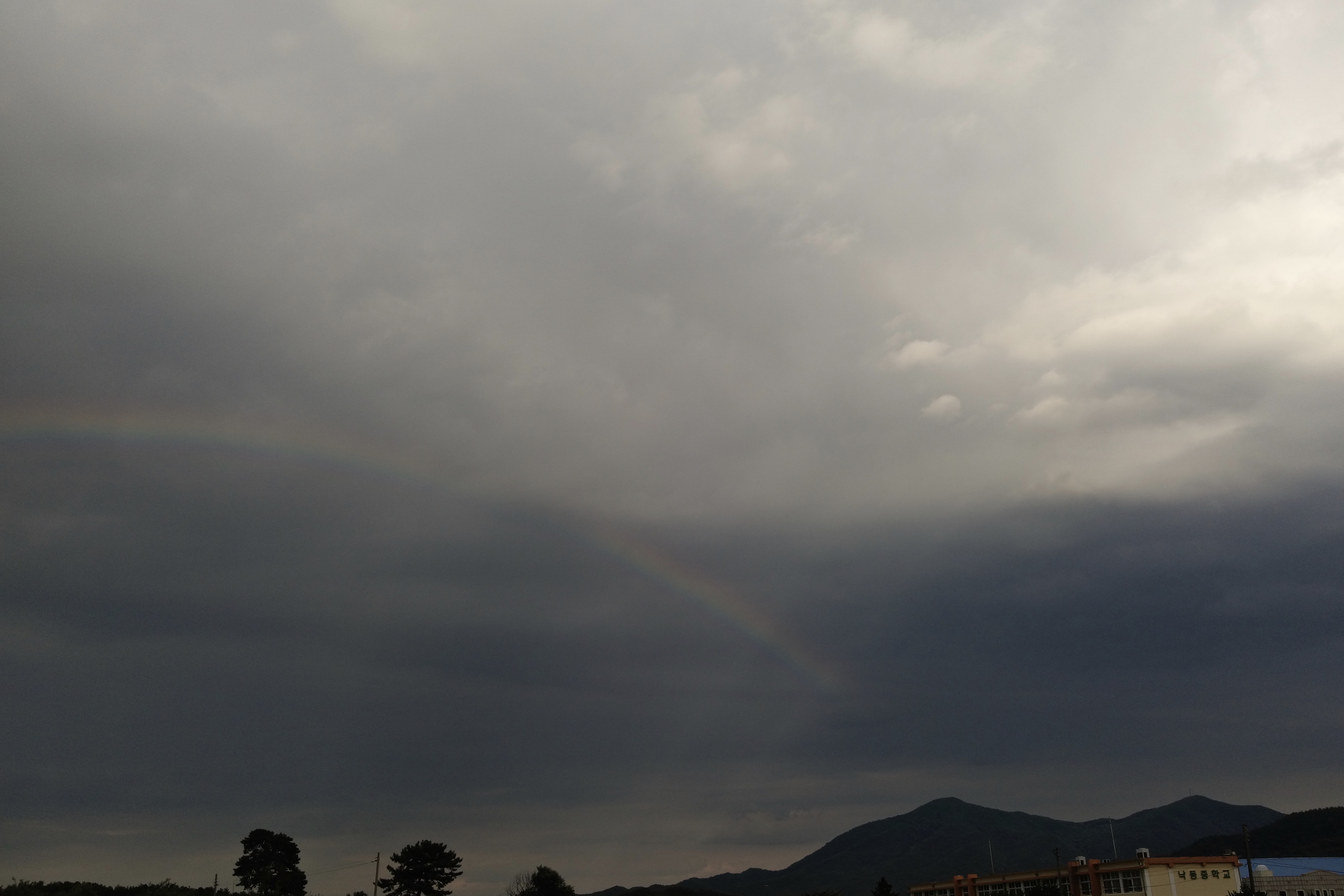 우비도 우산도 없었기애 올라가다가 내려왔다. 오는길애 무지개가 떠있길래 사진 촬영.