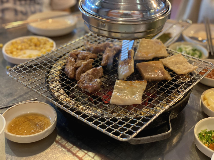 막창은 잘려서 초벌구이 조금 된 상태로 나온다. 막창을 좋아하지 않는 아내도 고소하고 맛있다고 했다. 애들도 삼겹살 맛있다고 했고.