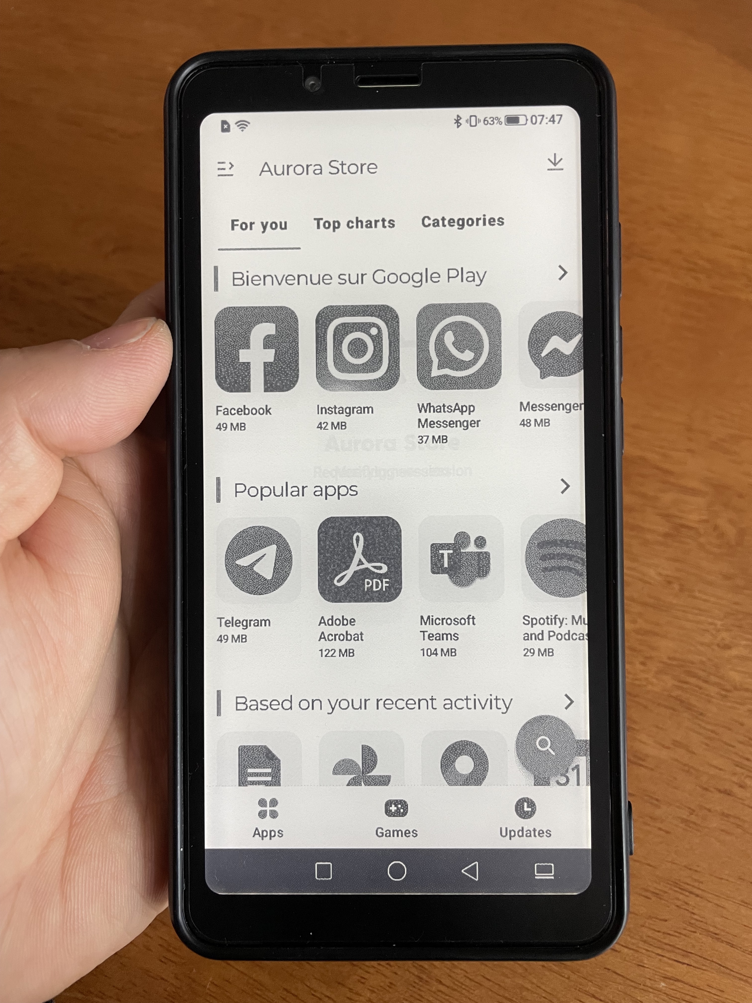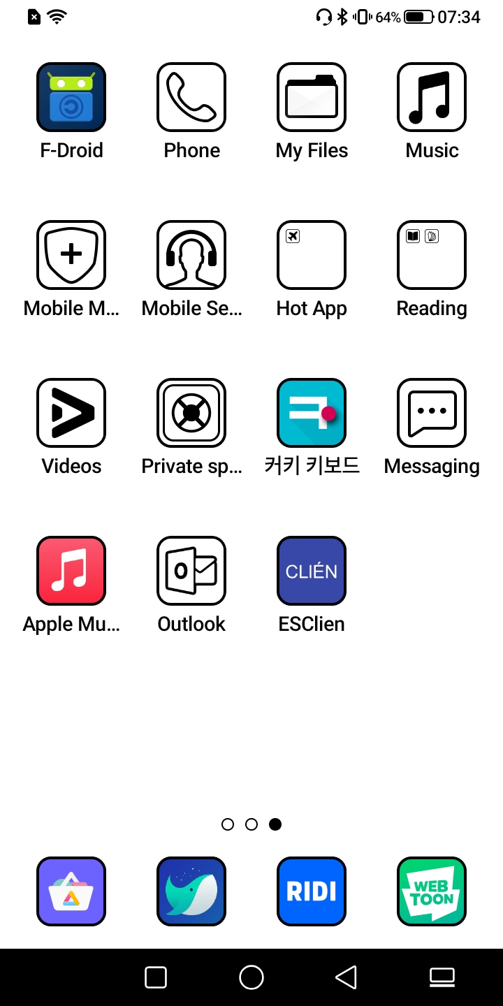 구글스토어가 아니라 [오로라 스토어]라는 것을 깔면 리디북스앱, 네이버 앱, 웨일 브라우져 등도 깔수 있으니 메인으로 완벽하게 사용하고 싶다는 욕망만 버리면 불편하지 않다.