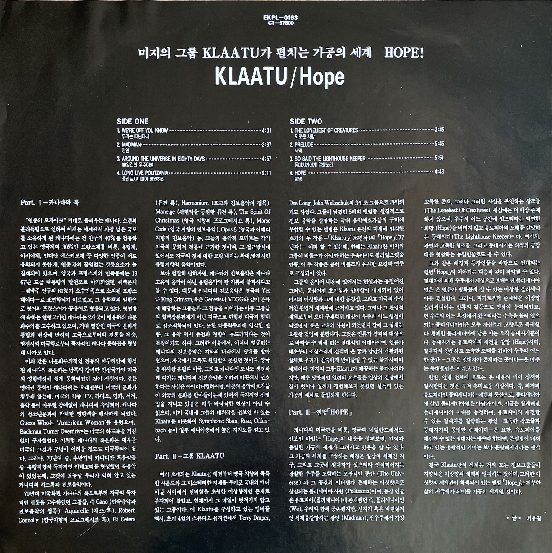 캐나다의 프로그래시브 록 밴드 Klaatu는 그들의 2집 Hope(1976)를 발매한다.